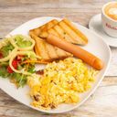 3 tojásos rántotta csemege kolbásszal, 1 szál virsli vagy debreceni, paradicsom, teljes kiőrlésű toast kenyér, 100%-os gyümölcslével (2dl) (Kérlek, válassz hozzá feltéteket!)
