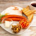 2 tojásos tükörtojás baconszalonnával vagy sonkával, 1 pár virsli vagy debreceni, teljes kiőrlésű toast kenyér, vaj, paradicsomos bab, gomba, saláta, 100%-os gyümölcslével (2dl) (Kérlek, válassz hozzá feltéteket!)