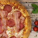 garlic pizza sauce, ham, bacon, mozzarella cheese, smoked trappist cheese