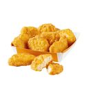 Csirkemellfilé darabokból formázva, pácolva és panírozva. Allergének (glutén, zeller)
