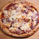 whiskys BBQ sauce base, cheddar cheese, bacon, chicken, fried onion, mozzarella cheese