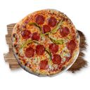 tomato sauce, mozzarella cheese, salami, pepperoni (1448 kcal) (Allergens: gluten, peanuts, dairy)