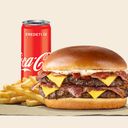 Visszatért a kihagyhatatlan szendvics a bacon szerelmeseinek. A fényes zsemlébe kerülő 2 db WHOPPER® húst kiegészítettük 4 szelet olvadós sajttal, plusz 8 ropogós baconnel. De most jön a csavar! Az egészet megkoronáztuk egy kis pikáns chili cheese szósszal, és néhány tüzes jalapeno karikával, az extra erő kedvéért. (Allergének: glutén, mustár, tej, szezámmag, kén-dioxid)