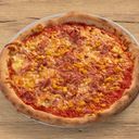 Tomato sauce, Mozzarella cheese, Baked Ham, Corn