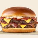 Tapasztald meg, milyen az, amikor a dupla WHOPPER® húspogácsát nem kevesebb, mint 8 (!) szelet bacon és 4 (!) szelet sajt még tovább fokozza, az extrább ízélményt pedig a bacon-majonéz, a ketchup és a napon szárított paradicsomos szósz hozza. Ja igen, az egészet fényes zsemle koronázza meg. (Allergének: glutén, mustár, tej, tojás, szezámmag, kén-dioxid)