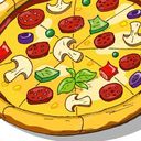 olasz paradicsomos alap, kolbász, bacon, gomba, lila hagyma, sajt, zöldpaprika, tejföl, csemegeuborka