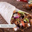 gyroshús, jégsaláta, lila káposzta, káposzta, hagyma, paradicsom, csípős szósz, joghurt (Kérlek, válassz hozzá köretet!) A kép illusztráció.