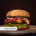 buci, jégsaláta, csemegeuborka, paradicsom, lila hagyma, trappista sajt, cheddar sajtszósz, 2db húspogácsa, hagyma, választható szósz (Kérlek, válassz hozzá szószt!)