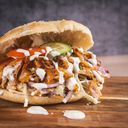csirkehús, házi készítésű pita, saláta, káposzta, paradicsom, lila hagyma, uborka, kebabszósz, őrölt chili paprika (Kérlek, válassz hozzá hús mennyiséget!)