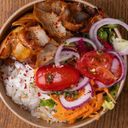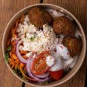 Tortillatekercs falafelgolyókkal és zöldségekkel