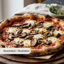 Kovászos tészta, aprított paradicsom szósz, olíva olajban áztatott shitake gomba szeletek, fior di latte mozzarella és szárított oregano