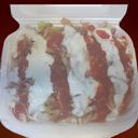 hús, hagyma, paradicsom, lila káposzta, jégsaláta, joghurtszósz, csípős szósz (Kérlek, válassz hozzá köretet!)