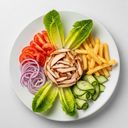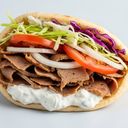 Fűszeres hús, friss zöldségek, pita és ízletes szószok kombinációja.